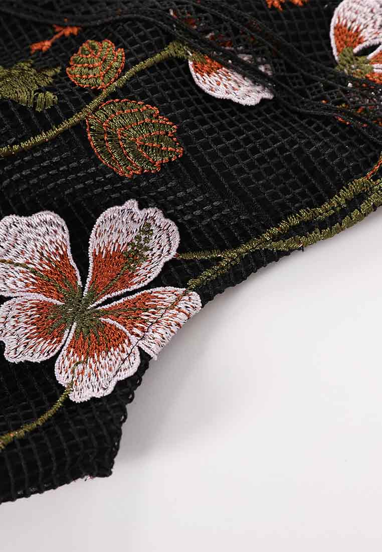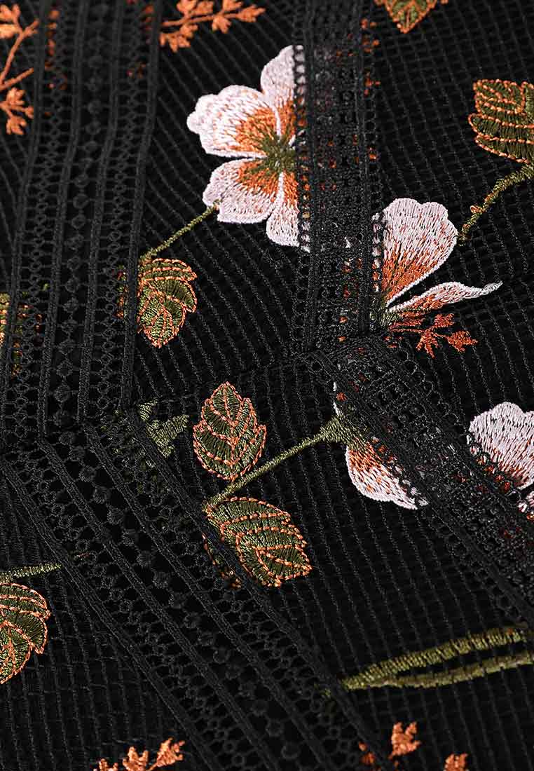 Floral Embroidered Sleeveless Cocktail Midi Dress