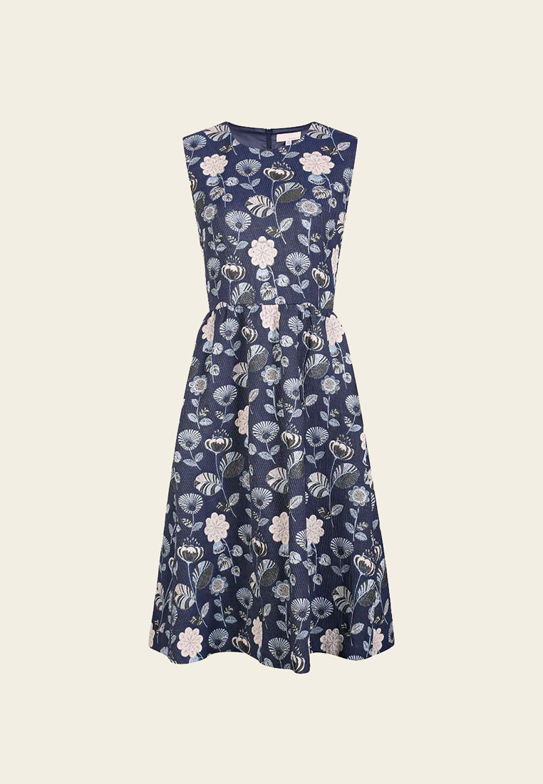 Diane Floral Embroidered Sleeveless Cocktail Dress