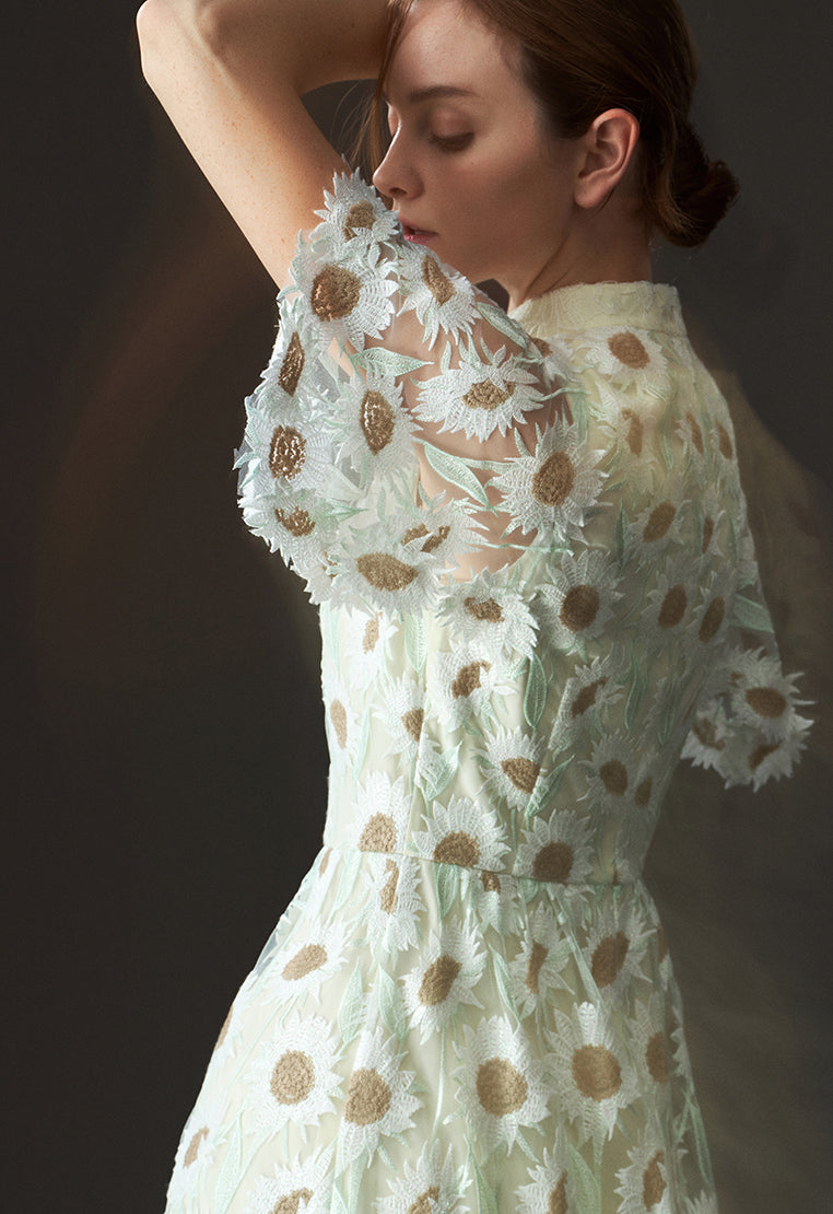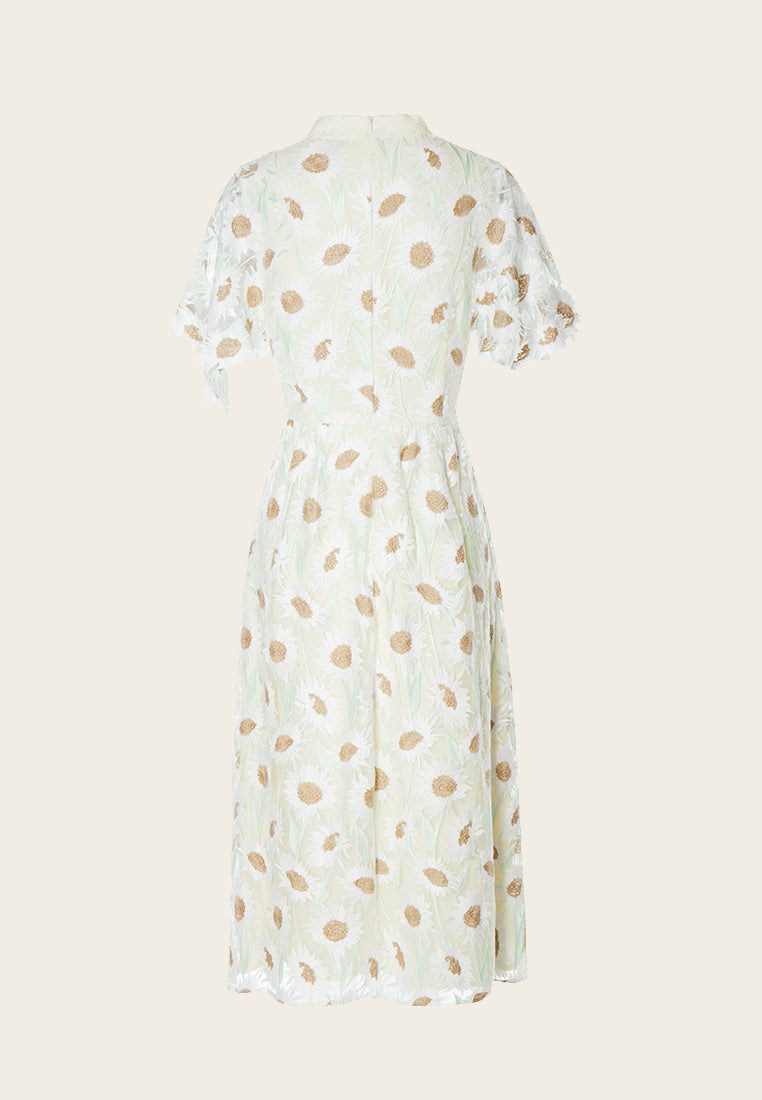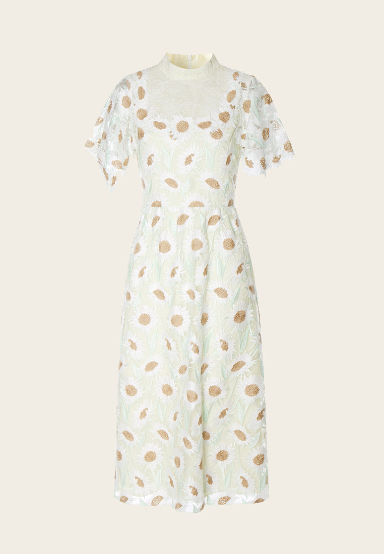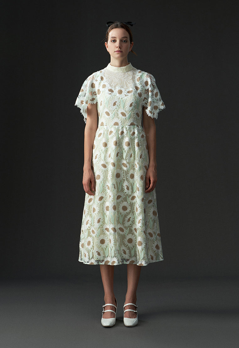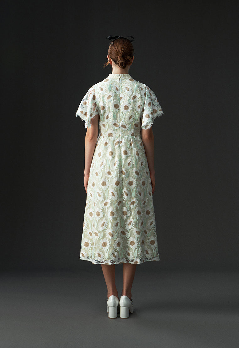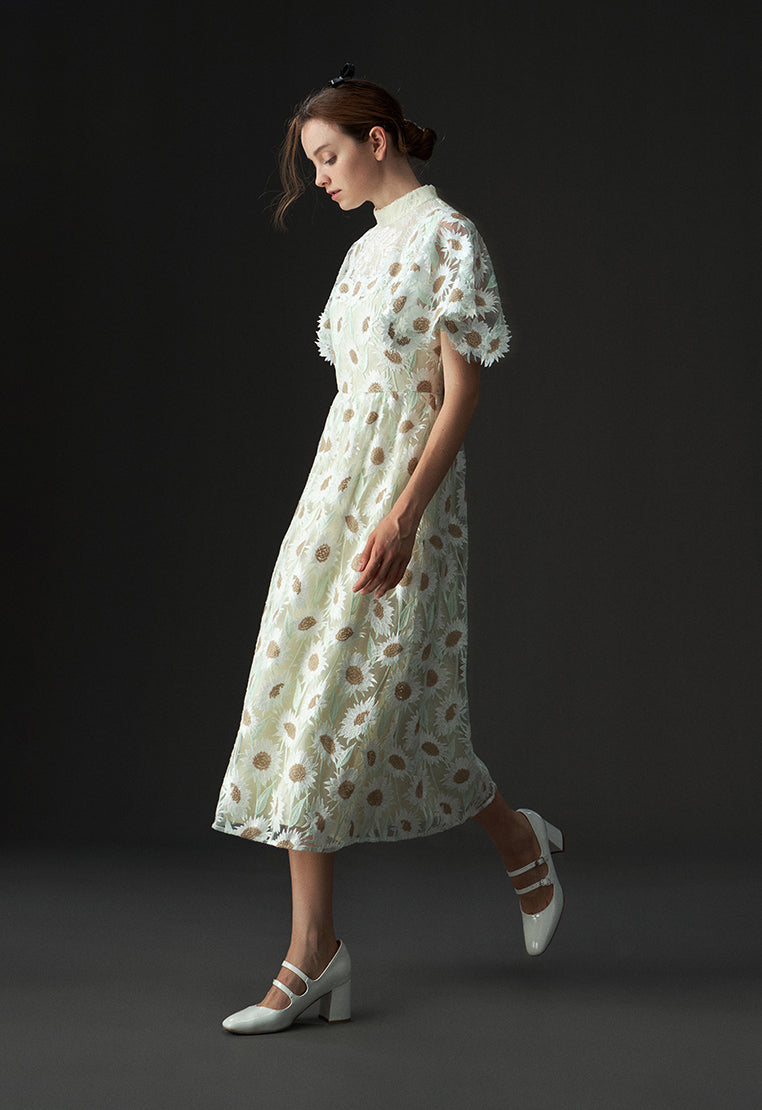 Chamomile Mix Lace Stand Collar Cocktail Dress