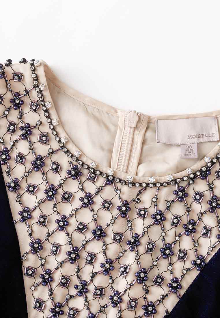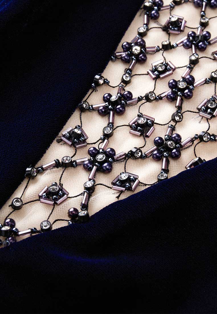 Crystal and Bead Embellished Sleeveless Velvet Dress