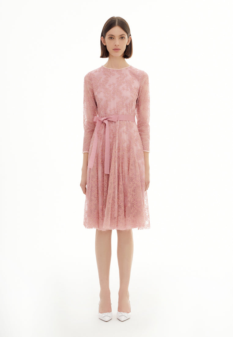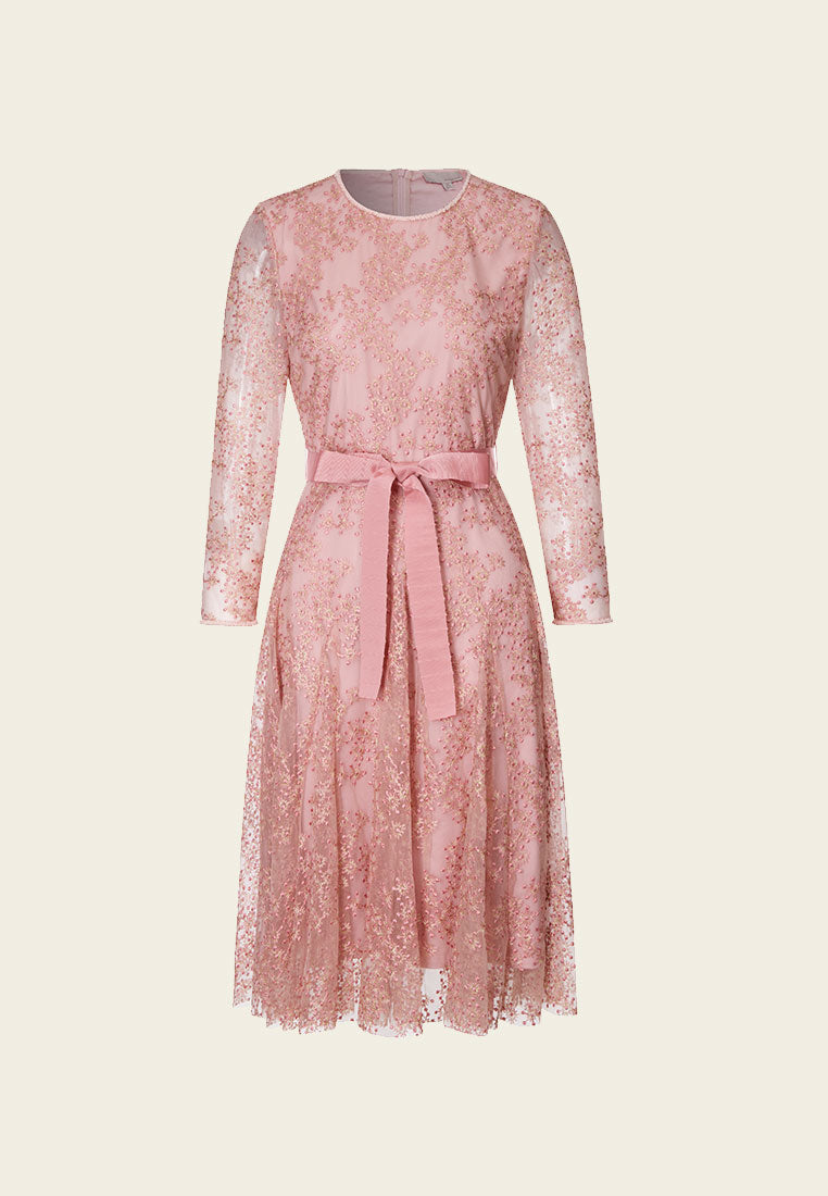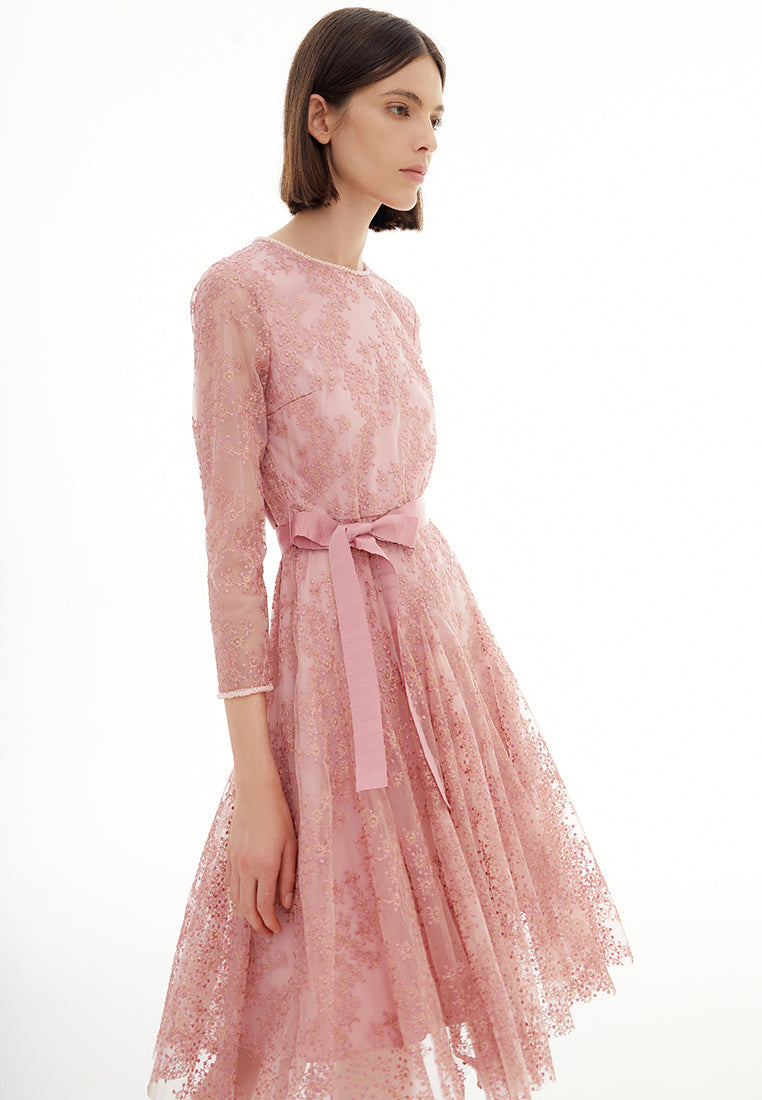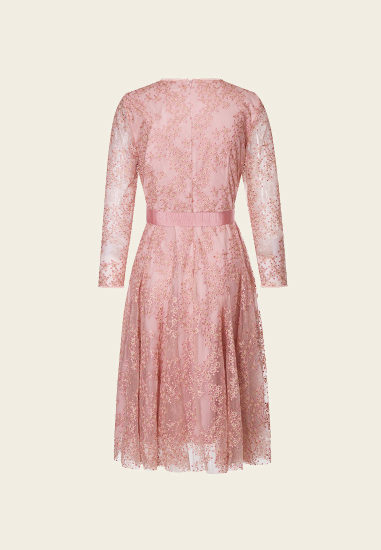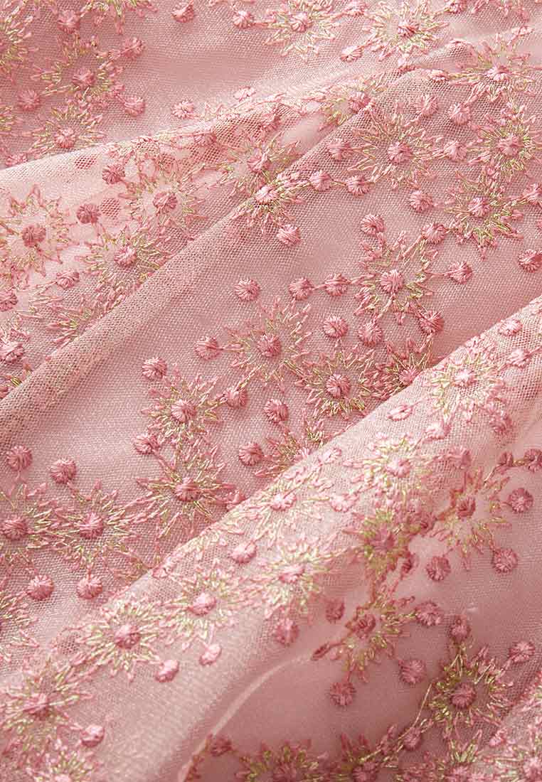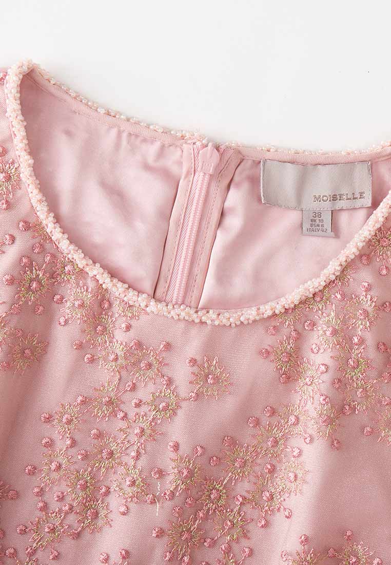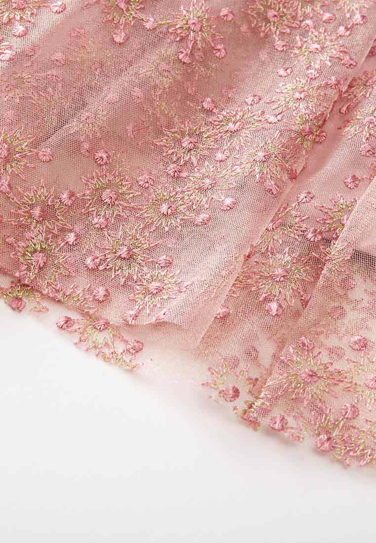 Pink Embroidered Mesh Cocktail Dress