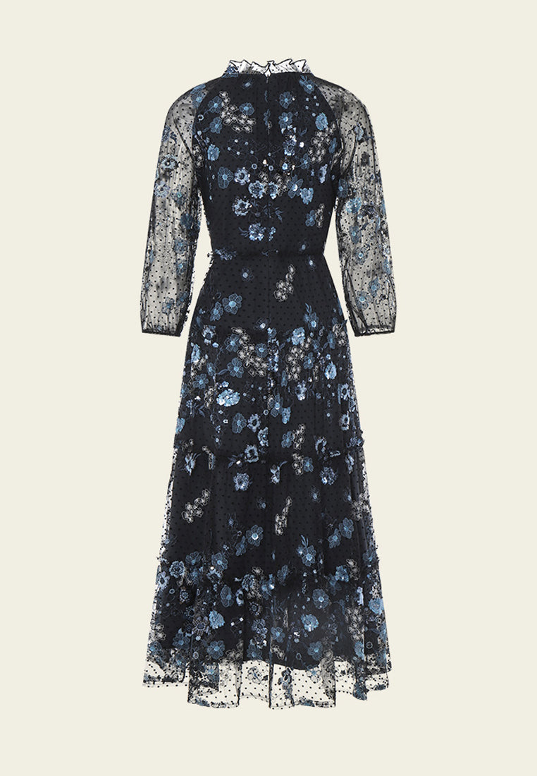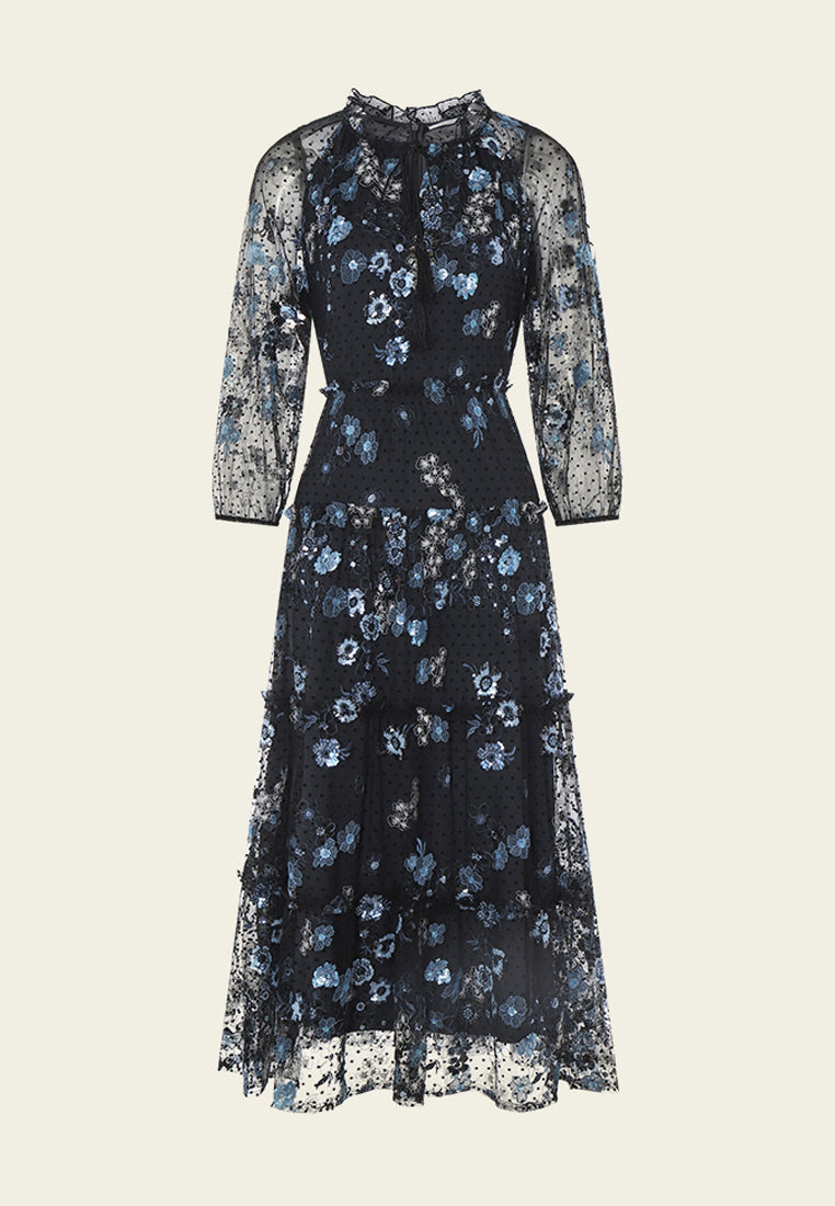 Floral Sequins and Embroidery Mesh Dress