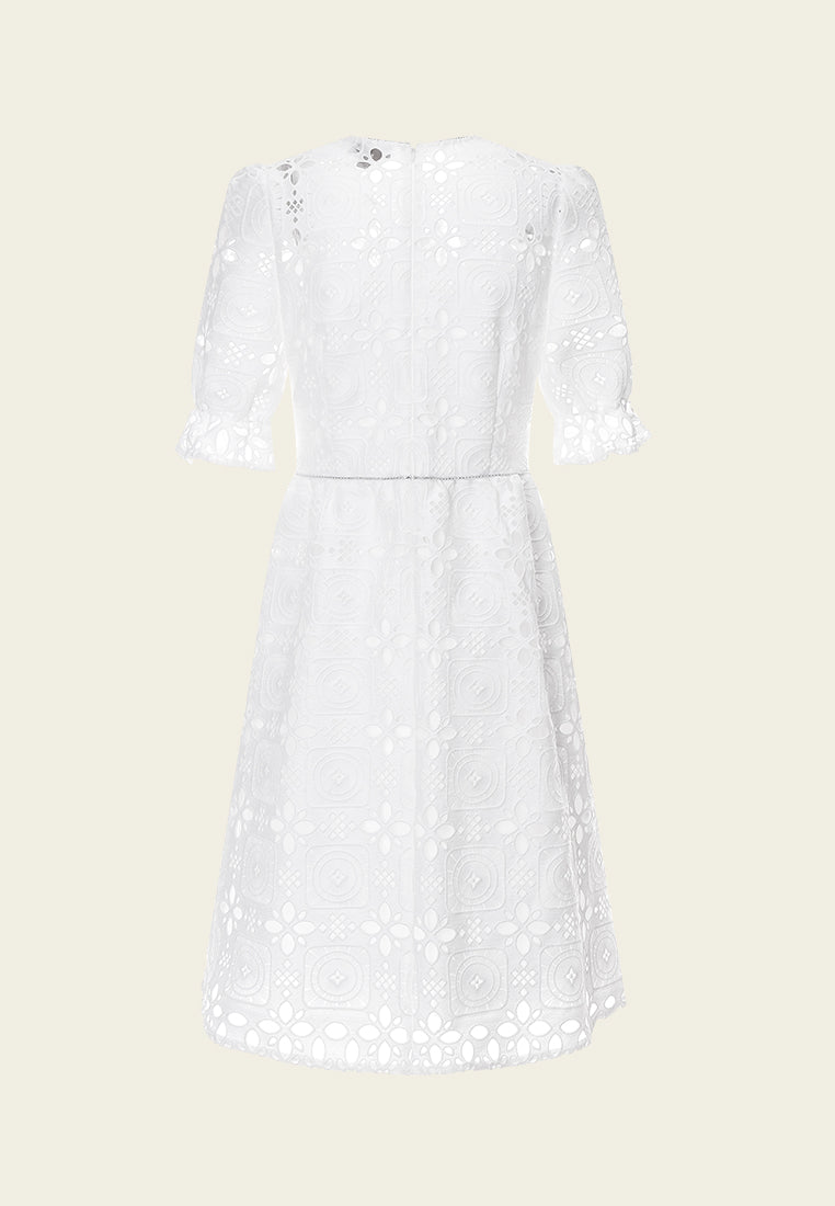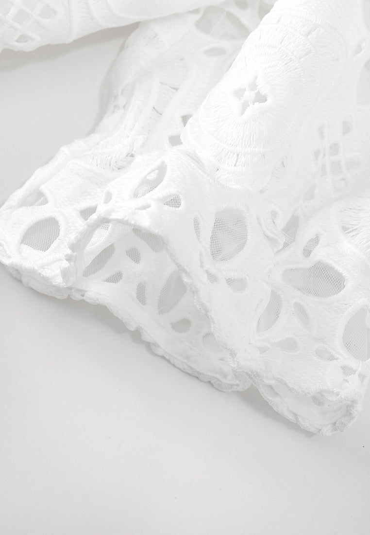 Puff Sleeves White Lace Dress