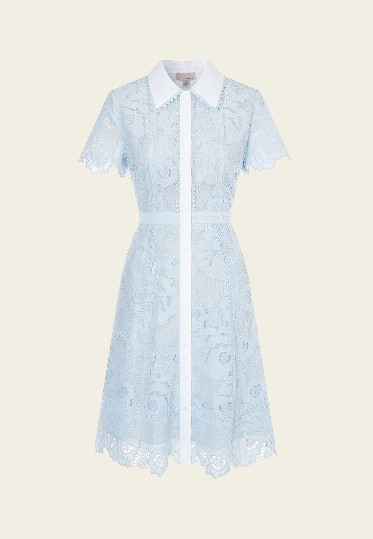 Light Blue Lace Collar Dress