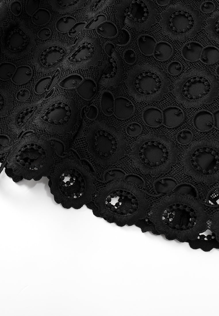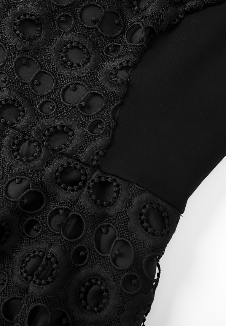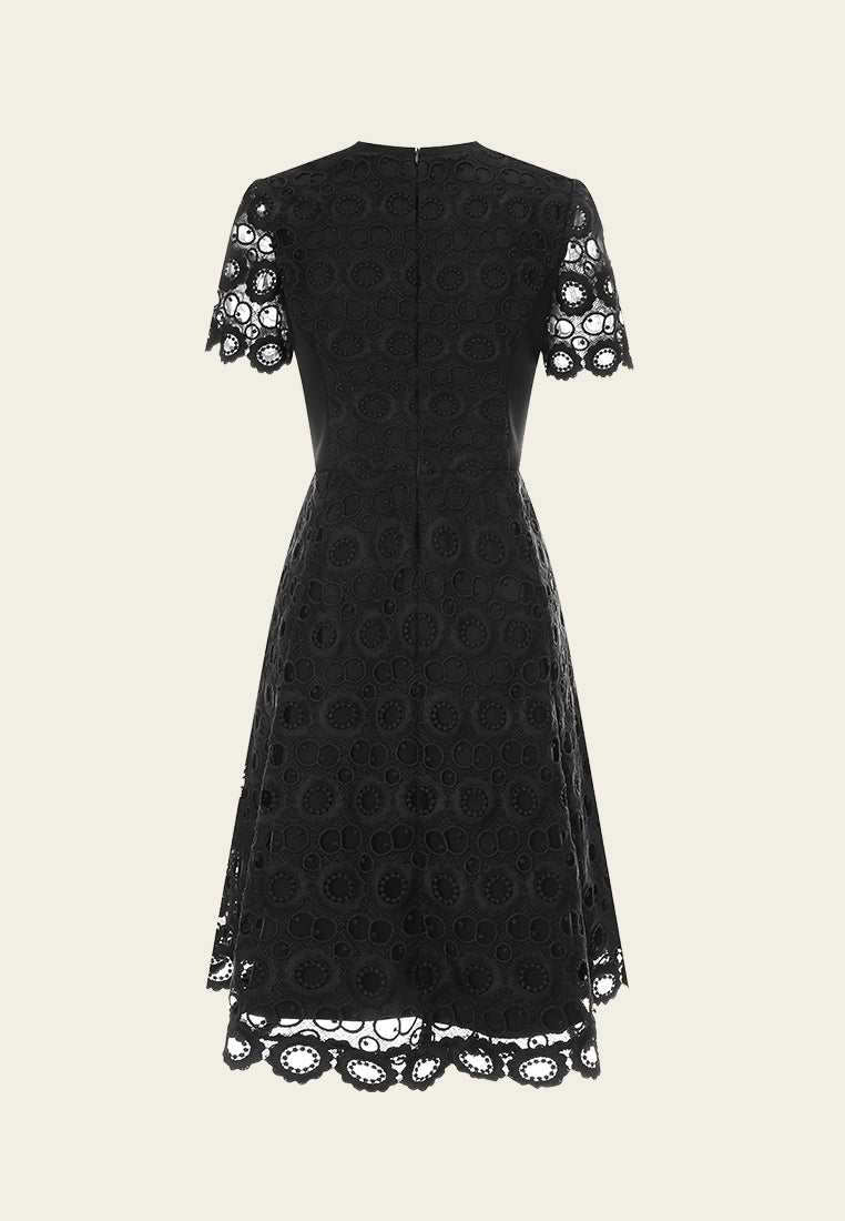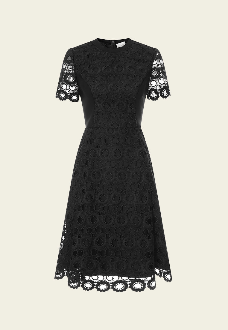 This timeless classic, the little black dress, is essential to any woman's wardrobe, and this exquisite lace piece is no exception. Featuring a slim-fitting waist, this dress features contrasting fabric for a chic, fashion-forward look. The ultra-feminine silhouette has been designed with modern comfort in mind, ensuring the perfect combination of style and comfort, for any occasion.