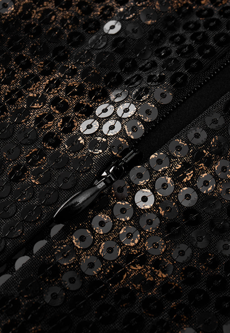 A distinctive piece to make a bold statement and revel in the evening. Featuring an alluring leopard pattern crafted from lustrous lurex and embellished with black sequins for an eye-catching shimmer, its fitted fabric emphasizes your curves for a stunningly glamorous look. Make a memorable impression in this spectacular dress.