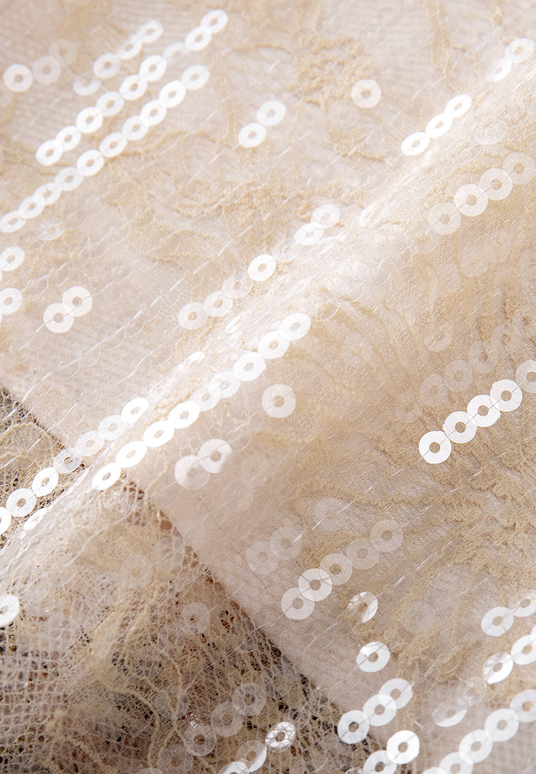 Embroidery-detail Mesh on Sequin-detail Lace Dress