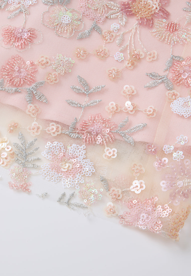 - Pastel Tone Embroidered and Sequined Floral Pattern