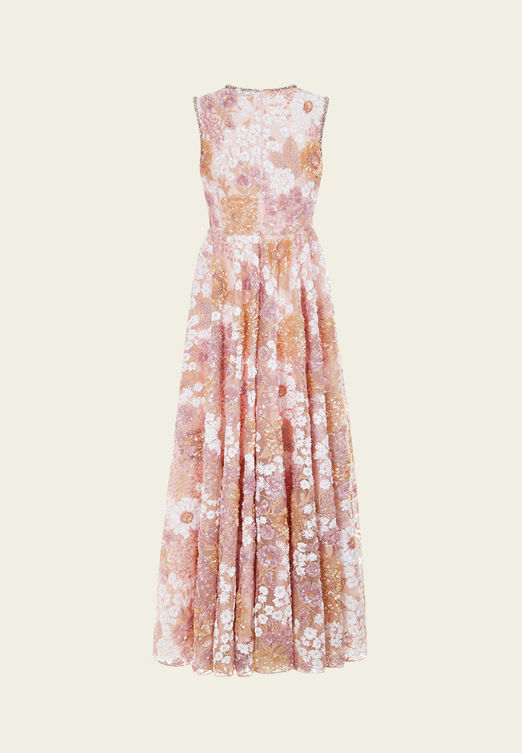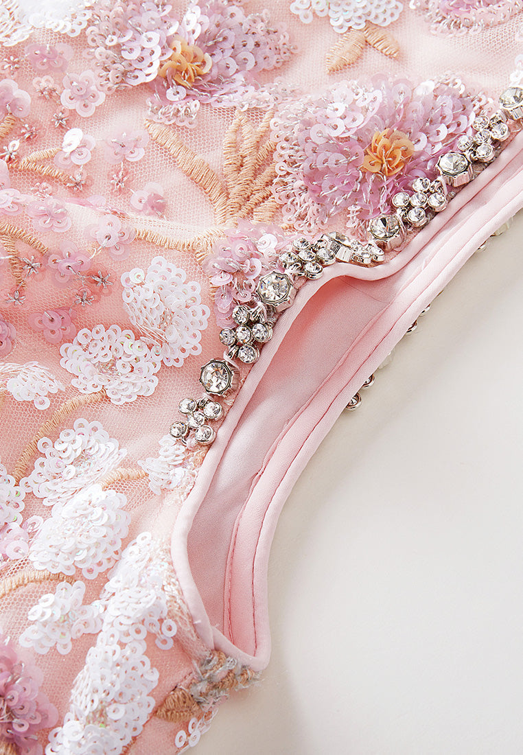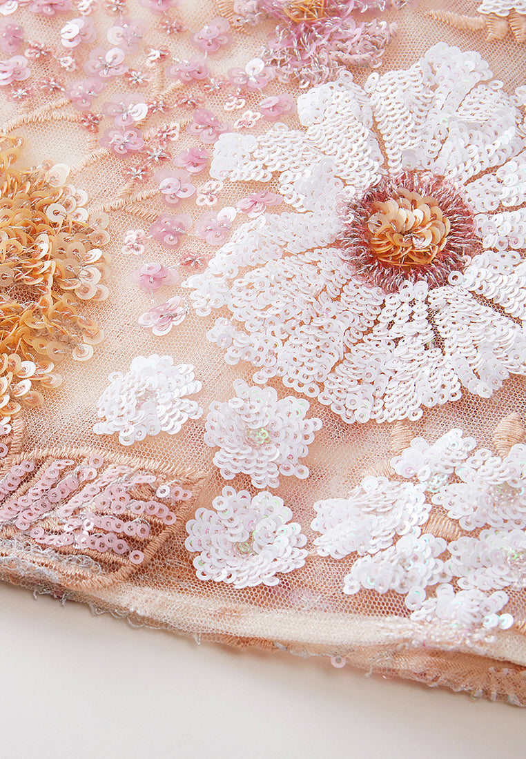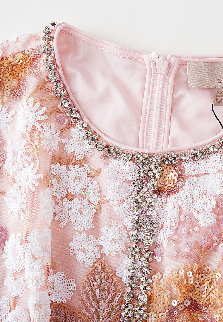 Sequin-detail Crystal-detail Embroidered Mesh Dress