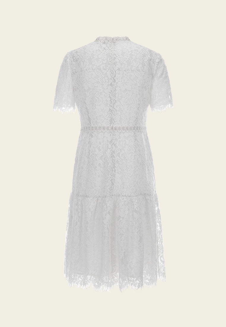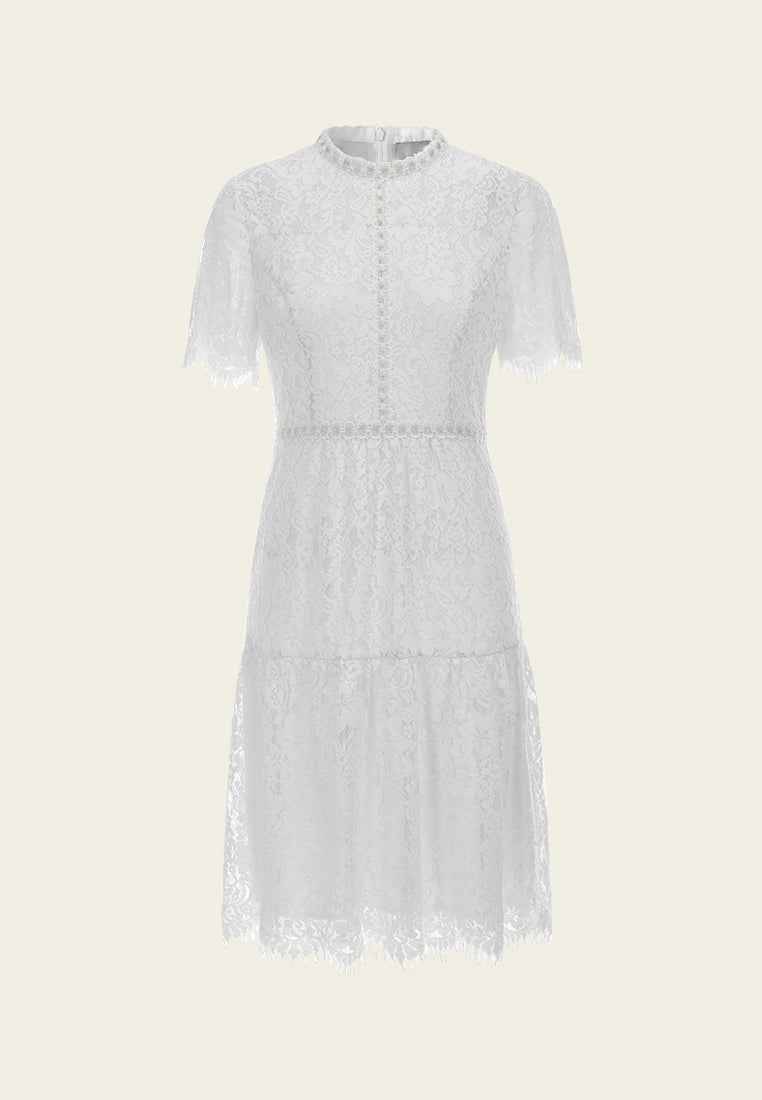 Stand-collar Luerx-trim Frayed-detail Lace Dress
