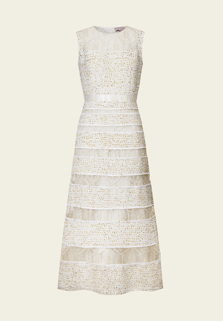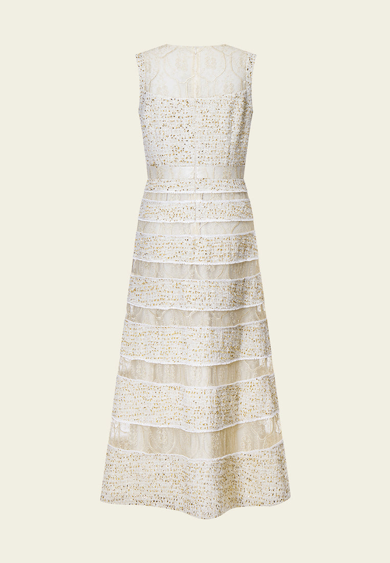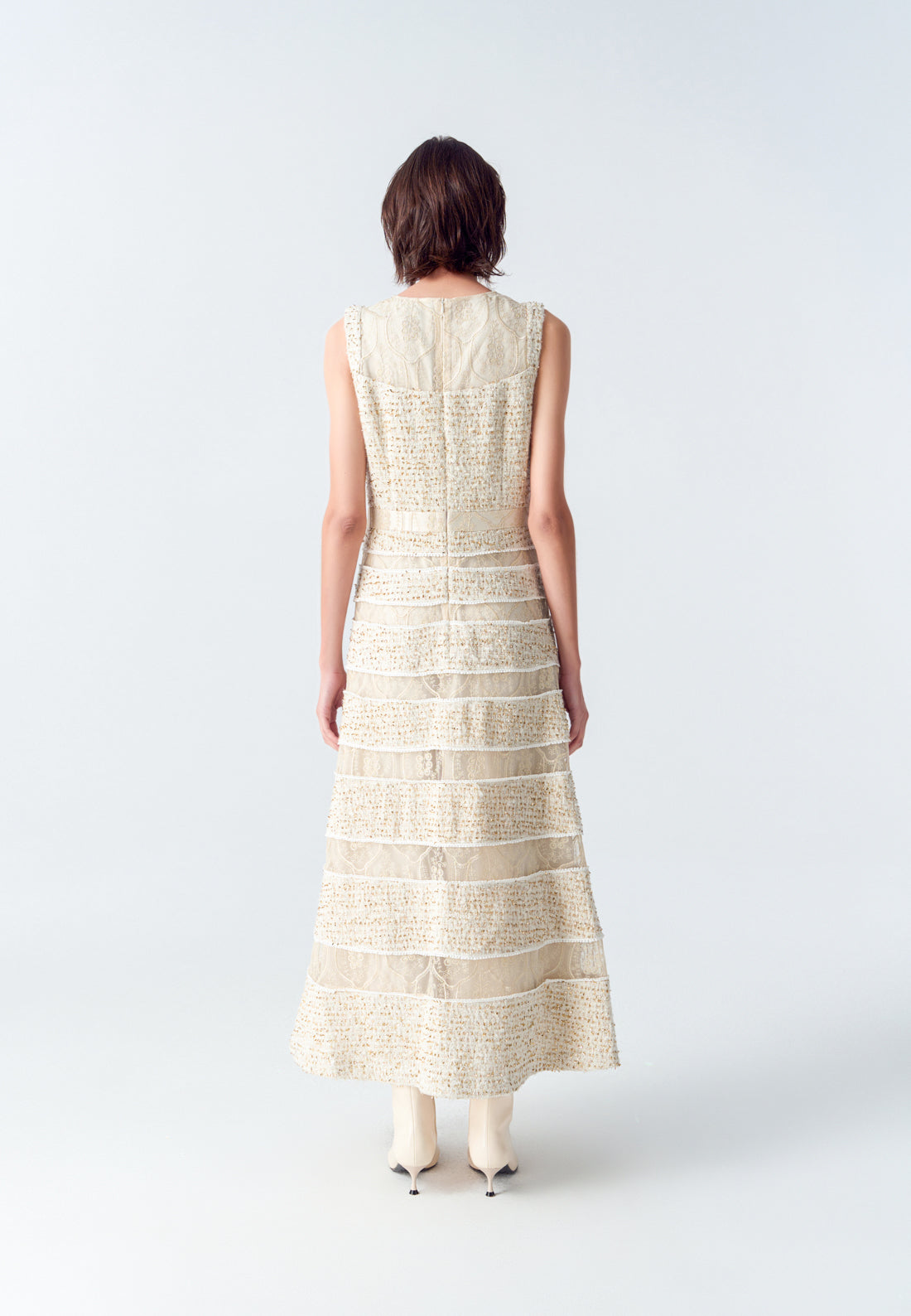 Tweed-Lace Striped Sleeveless Maxi Dress